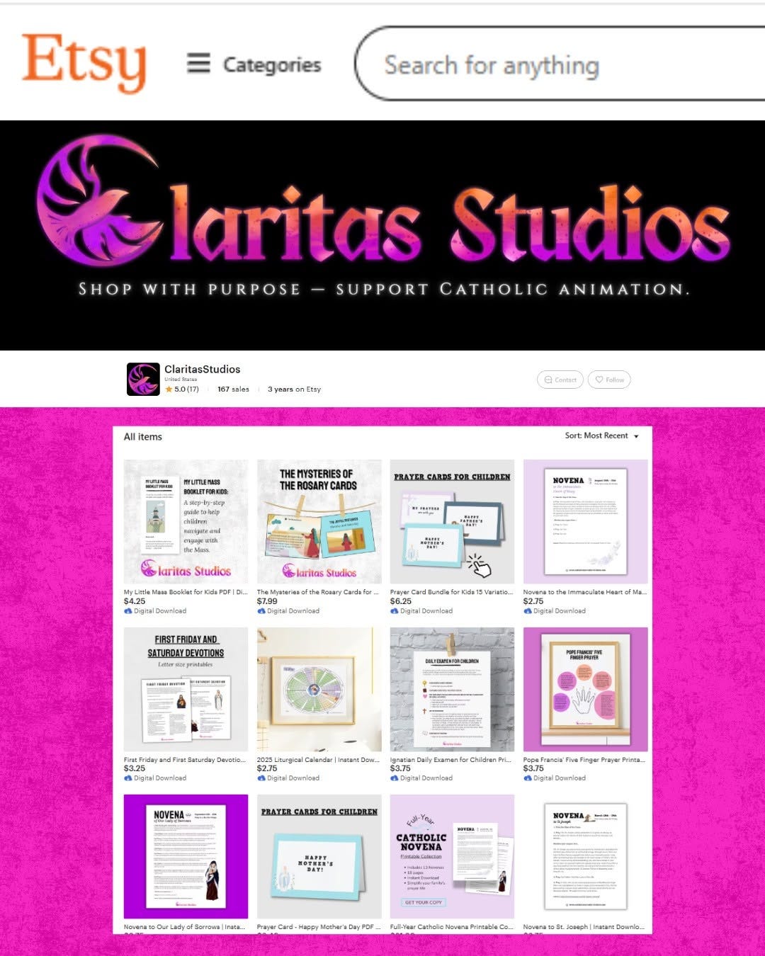 We have everything from novenas and guides to printable prayers on our Etsy shop. Check our shop out HERE! » The sale starts NOW and ends Dec. 5th/2025. «