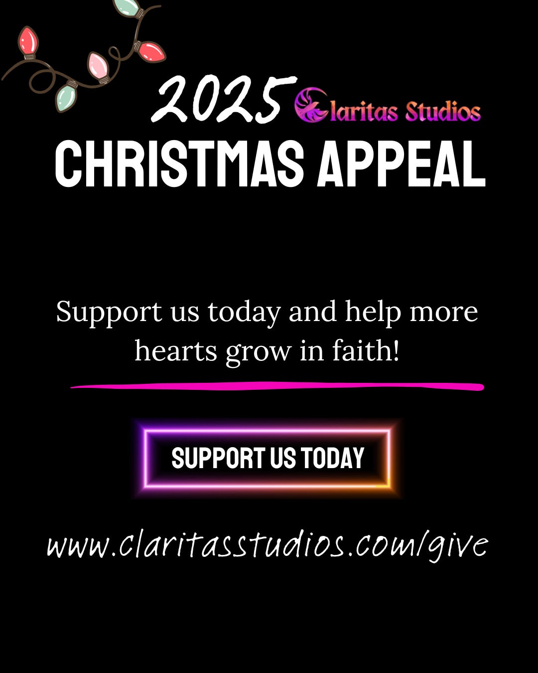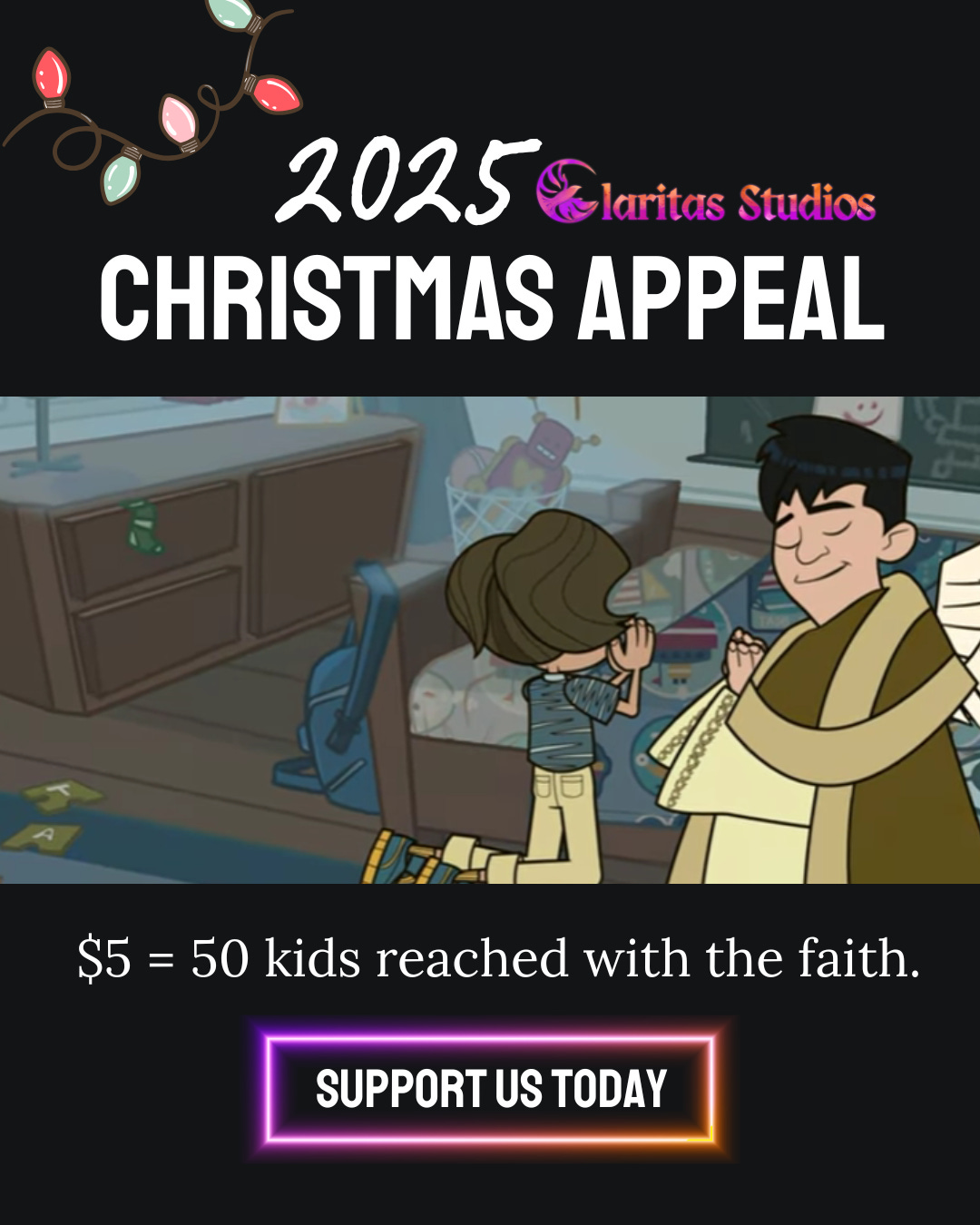 Our 2025 Christmas Appeal is almost over! Discover how you can make your donation go further and help Claritas Studios inspire hearts with faith-filled stories, music, and animations.