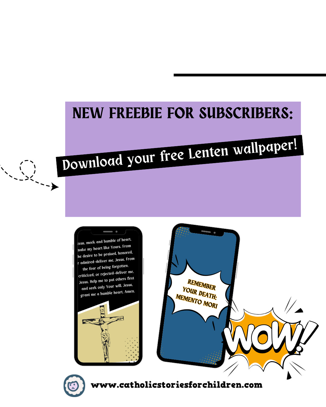 Just in case you missed it: we also put together two free Lenten-themed phone wallpapers to help keep your heart focused on Jesus every time you open your phone. Just save them below and set them as your wallpaper. May God bless you and your family this Lent! π