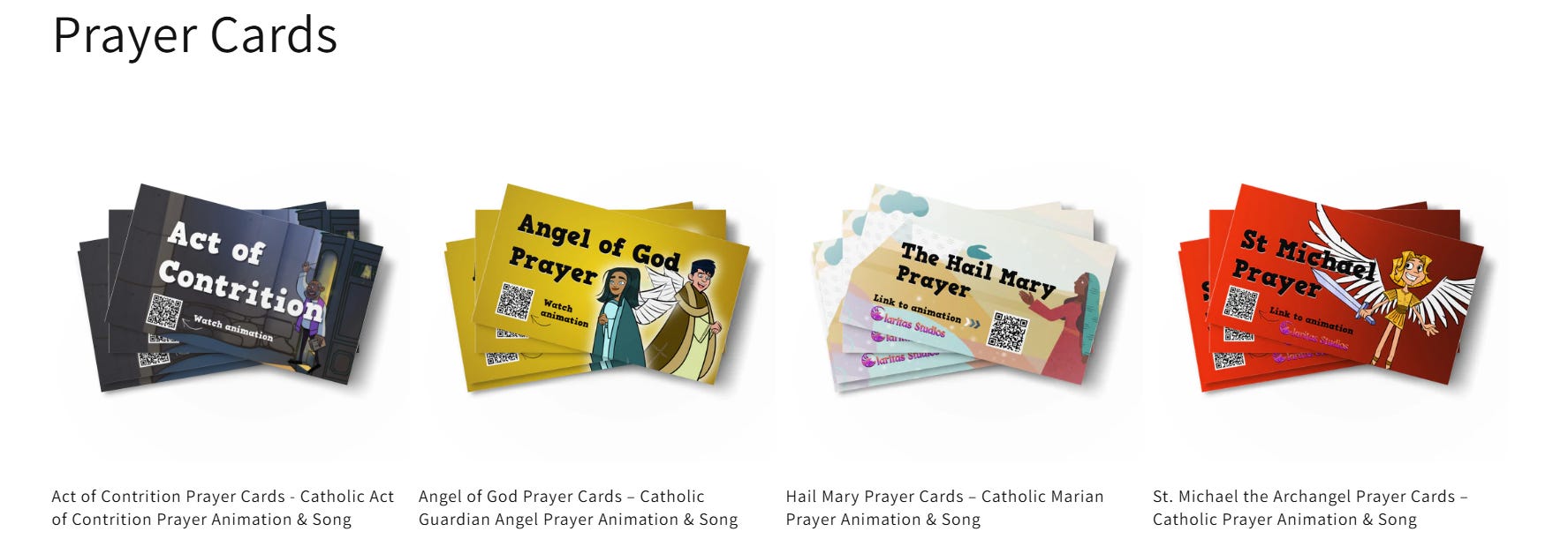 I had been handing out these little Catholic prayer cards (see below) that link to our animated prayer videos. One of the people I handed them to decided to make a donation on the spot to print more AND referred me to his guy for printing. Thank you, Lord!